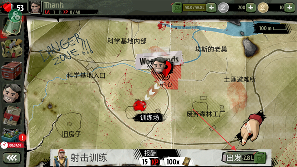 3、打開地圖,查看訓(xùn)練場位置,點(diǎn)擊出發(fā)前往訓(xùn)練場。