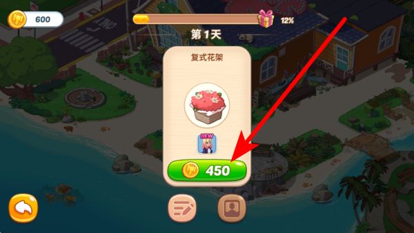 1、進(jìn)入游戲后,可以看到第一關(guān)需要用消除所得資源裝扮花店,如解鎖復(fù)式花架等設(shè)施。