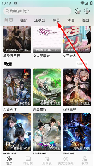 1、在APP首頁,點(diǎn)擊綜藝分類,進(jìn)入綜藝列表頁面。