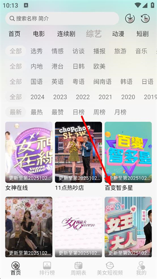 2、在綜藝列表頁面,選擇想要查看的綜藝,如百變智多星。