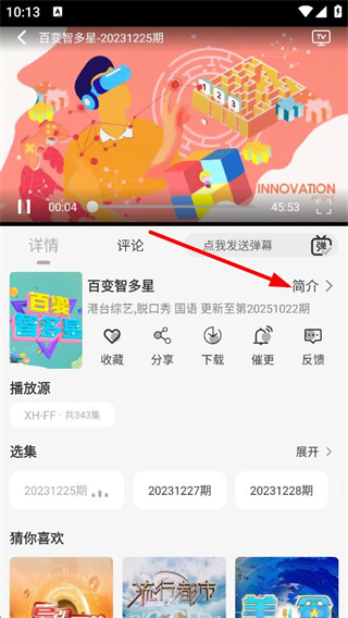 3、在綜藝播放頁面,來點(diǎn)擊簡介,進(jìn)入簡介查看頁面。