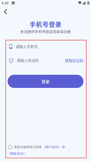 4、在手機(jī)號登錄頁面,輸入信息,同意協(xié)議后點擊登錄可完成登錄。