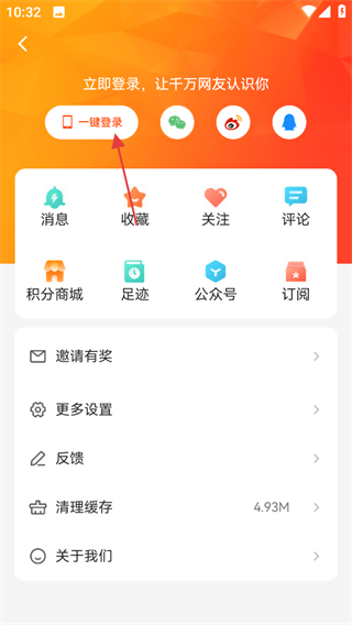 2、在個(gè)人中心頁(yè)面,點(diǎn)擊一鍵登錄可進(jìn)入手機(jī)號(hào)登錄頁(yè)面。