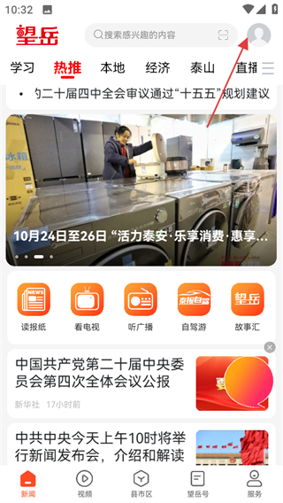 1、打開(kāi)望岳,點(diǎn)擊頁(yè)面右上角頭像圖標(biāo),可進(jìn)入個(gè)人中心頁(yè)面。