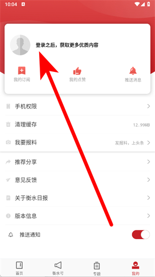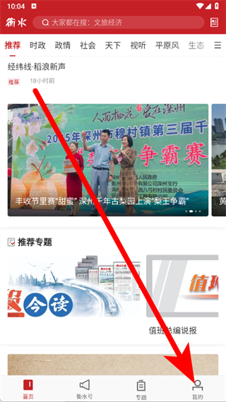 1、打開衡水日報,在首頁底部導航欄中,點擊我的選項,進入個人中心頁面。