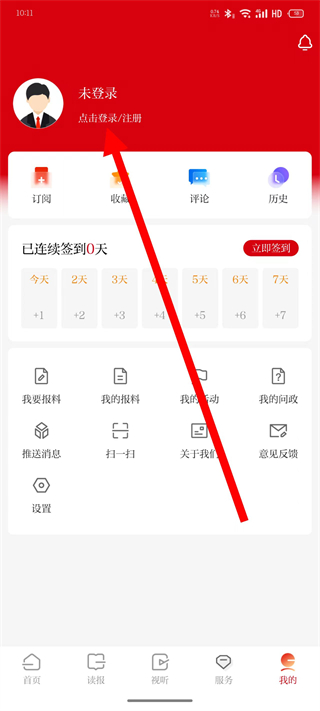 2、點(diǎn)擊底部我的,進(jìn)入個(gè)人頁(yè)面,顯示未登錄狀態(tài)及功能選項(xiàng)。
