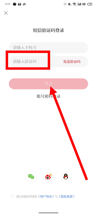 4、輸入收到的驗(yàn)證碼,勾選協(xié)議后,點(diǎn)擊登錄。