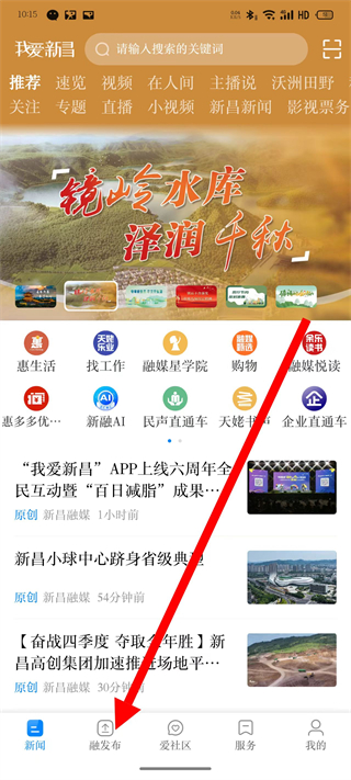 1、打開新邯鄲后,點擊底部導(dǎo)航欄中的融發(fā)布選項,進入融發(fā)布功能頁面。