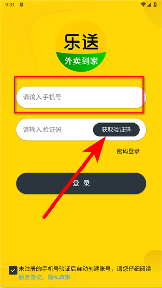 3、在登錄界面,輸入框中填寫號碼,點擊獲取驗證碼按鈕。