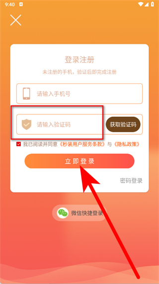 4、輸入收到的驗(yàn)證碼,點(diǎn)擊立即登錄,完成賬號登錄。