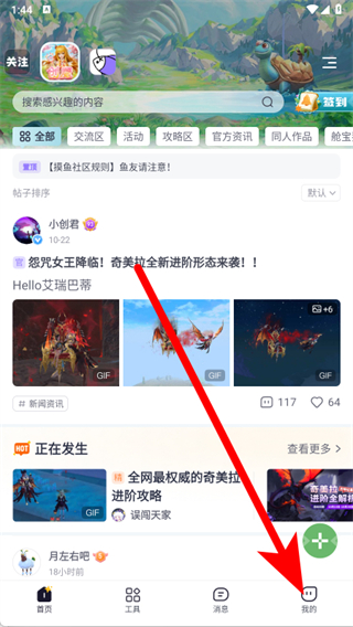 1、打開(kāi)摸魚(yú)社,點(diǎn)擊底部導(dǎo)航欄的我的,進(jìn)入個(gè)人中心頁(yè)面。
