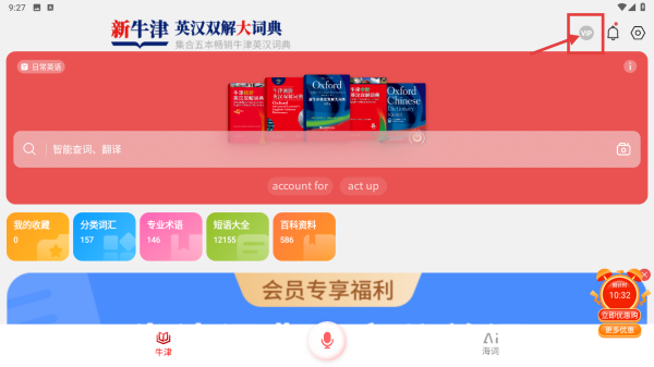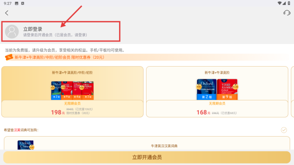 1、打開詞典類應(yīng)用,點(diǎn)擊右上角登錄按鈕,進(jìn)入登錄頁面。