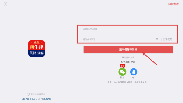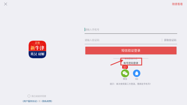 2、在登錄頁面,點(diǎn)擊賬號密碼登錄選項(xiàng),進(jìn)入賬號密碼登錄頁面。