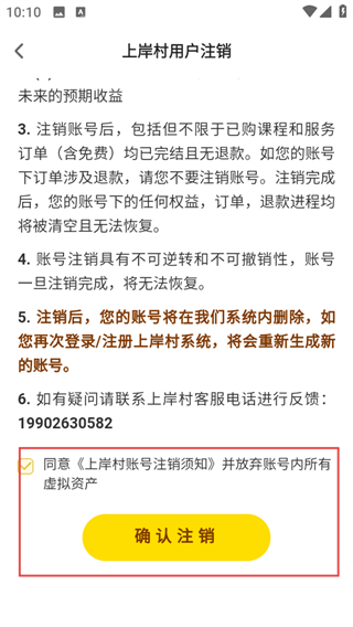 4、在注銷頁面,勾選同意相關(guān)須知后點(diǎn)擊確認(rèn)注銷可完成賬號注銷操作。