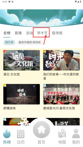 1、打開文化類應(yīng)用,點擊底部熱榜選項,進(jìn)入熱榜頁面。
