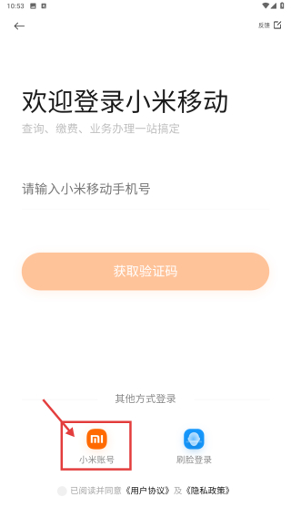 3、在登錄方式選擇界面,點(diǎn)擊小米賬號選項(xiàng),進(jìn)入小米賬號登錄頁面。