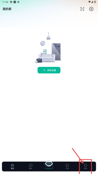 1、打開智能家居類應(yīng)用,點(diǎn)擊底部我的選項(xiàng),進(jìn)入個(gè)人中心頁(yè)面。