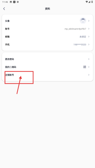 3、在資料頁(yè)面,點(diǎn)擊注銷賬號(hào)選項(xiàng),進(jìn)入注銷賬號(hào)頁(yè)面。