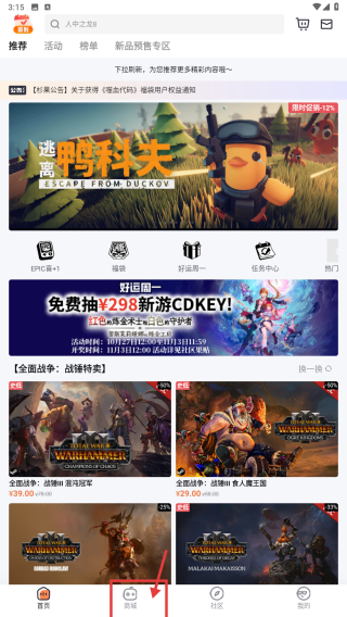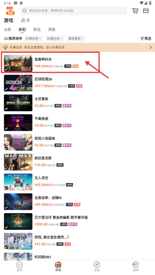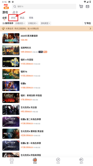 2、在商城頁面,點(diǎn)擊折扣分類選項(xiàng),瀏覽折扣游戲列表。