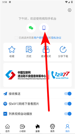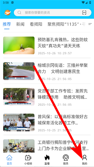 1、打開揭陽手機(jī)臺(tái),點(diǎn)擊底部導(dǎo)航欄的我的,進(jìn)入個(gè)人中心頁面。