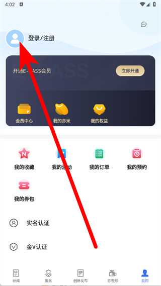 2、在個(gè)人中心頁面,點(diǎn)擊登錄注冊(cè)區(qū)域,進(jìn)入手機(jī)快捷登錄界面。