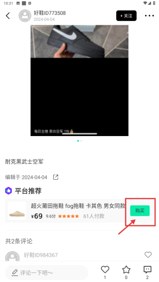 4、在商品詳情頁,點擊購買按鈕,完成該商品的購買操作。