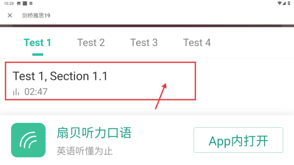 4、在練習(xí)頁(yè)面,選擇Test-1, Section-1.1,即可開(kāi)始該部分的聽(tīng)力練習(xí)。
