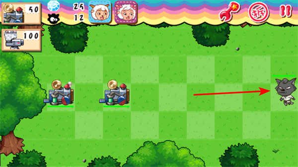 4、游戲中會(huì)出現(xiàn)像灰太狼一樣的敵人,需利用建筑或角色的能力對(duì)抗,擊敗敵人可獲取資源。