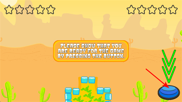 1、游戲開始前,點(diǎn)擊右側(cè)藍(lán)色按鈕,以此確認(rèn)準(zhǔn)備就緒,這是開啟游戲的必要操作,點(diǎn)擊才能進(jìn)入游戲?qū)?zhàn)環(huán)節(jié)。