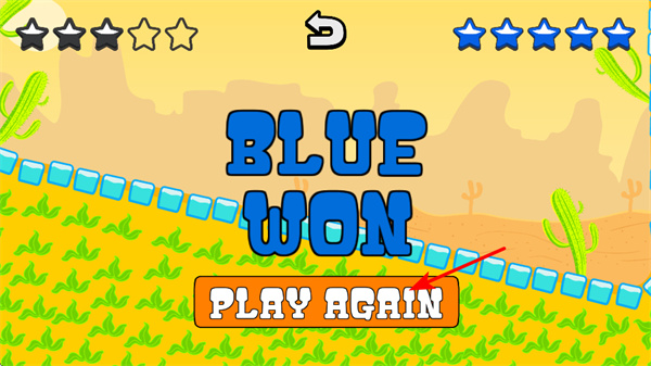 4、當(dāng)一方獲得勝利后,點(diǎn)擊PLAY AGAIN按鈕可重新開始游戲,繼續(xù)體驗(yàn)摔跤對(duì)決的樂趣,不斷提升對(duì)戰(zhàn)技巧。
