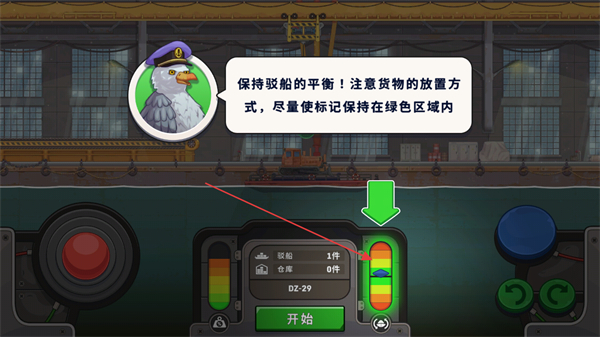 1、保持駁船平衡,注意貨物放置方式,盡量使標(biāo)記保持在綠色區(qū)域內(nèi)。