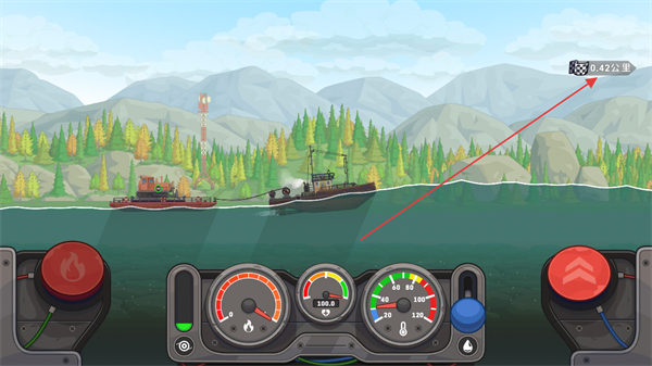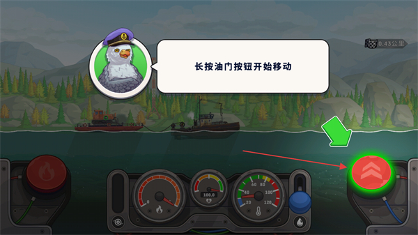2、長(zhǎng)按油門按鈕開始移動(dòng)船舶。