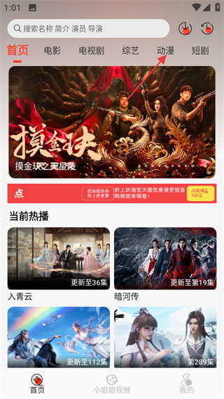 1、打開八天影視,在首頁點擊動漫,可進入動漫分類頁面。