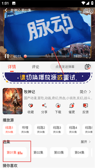 3、在動漫播放頁面,選擇集數(shù)如第1集即可開始觀看該集內(nèi)容。