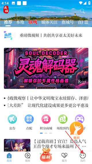 1、打開掌上鹿城,點擊頁面右下角我的,可進入個人中心頁面。