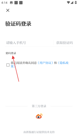 3、在登錄方式選擇頁面,點擊密碼登錄可進入密碼登錄頁面。