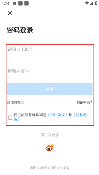 4、在密碼登錄頁面,輸入信息,同意協議后點擊登錄可完成賬號登錄。
