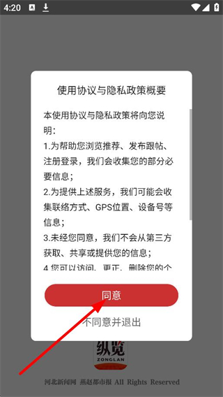 1、在使用協(xié)議彈窗中,點(diǎn)擊同意,進(jìn)入首頁。