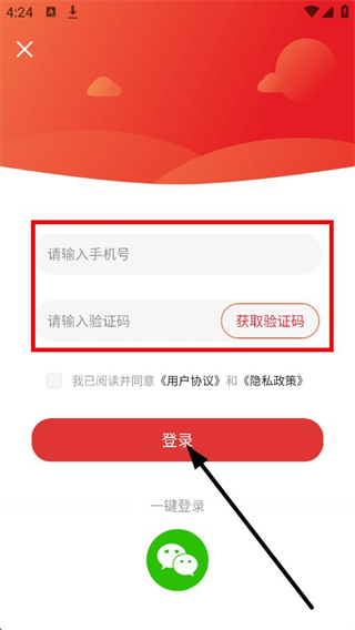 4、輸入手機(jī)號(hào),輸入驗(yàn)證碼,點(diǎn)擊登錄,完成賬號(hào)登錄操作。