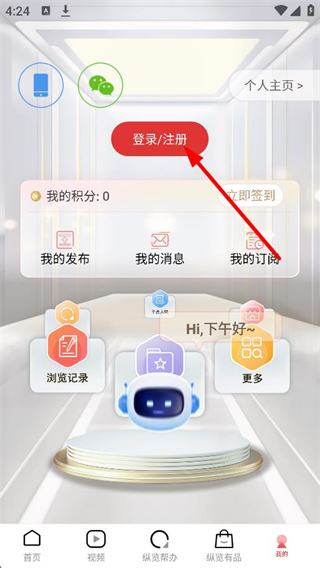 3、在個(gè)人頁面,點(diǎn)擊登錄/注冊(cè),進(jìn)入登錄頁面。