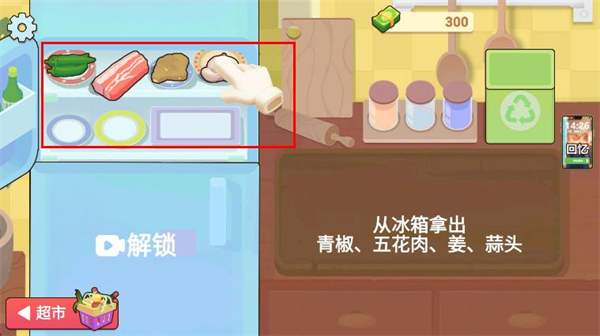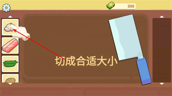 2、根據(jù)游戲的提示,在左側(cè)選擇需要的將食材,將食材拖拽到砧板上。
