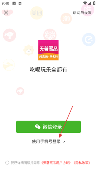 2、在登錄方式選擇頁面,點(diǎn)擊使用手機(jī)號(hào)登錄可進(jìn)入驗(yàn)證碼登錄頁面。