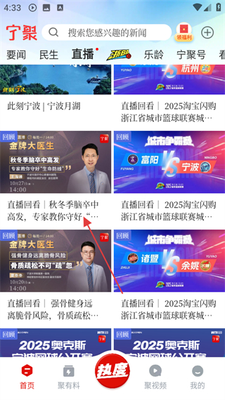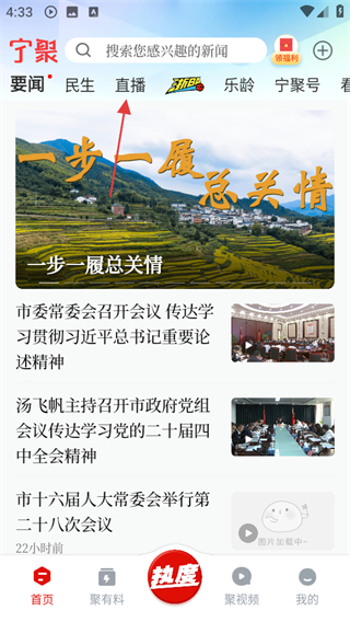 1、打開寧聚新聞,點(diǎn)擊直播,即可進(jìn)入直播分類頁面。