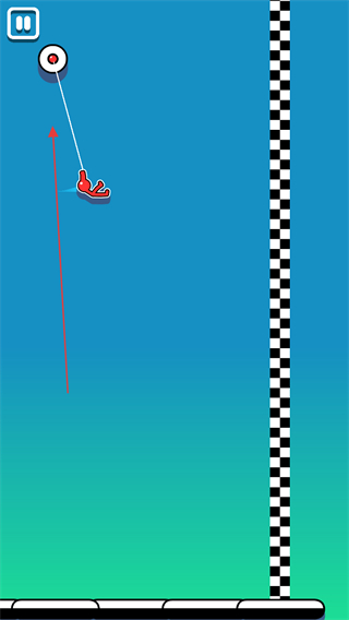2、在合適的時機松開飛鉤,讓火柴人向右側(cè)的黑白格子終點線飛行。