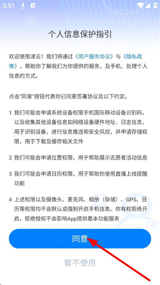 1、在個(gè)人信息保護(hù)指引彈窗中,點(diǎn)擊同意,進(jìn)入首頁。