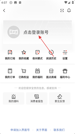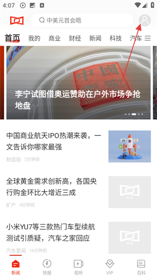 1、打開界面新聞,點擊右上角個人圖標,可進入個人中心頁面。