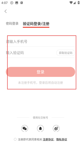 3、在登錄頁面,輸入信息,同意協(xié)議后點擊登錄可完成賬號登錄。