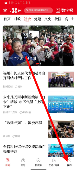 1、打開掌上福州,點擊底部右下角我的,進入個人頁面。