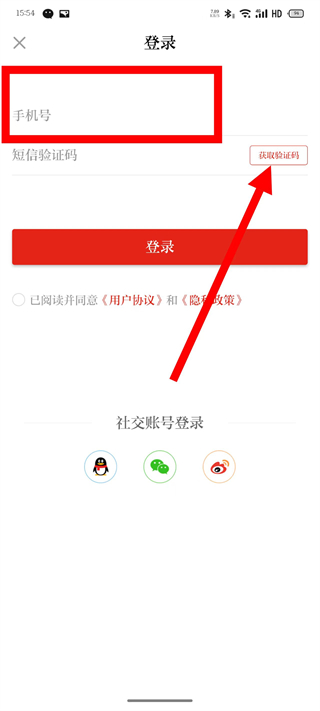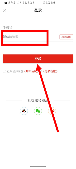3、進入登錄頁面,輸入手機號,點擊獲取驗證碼。