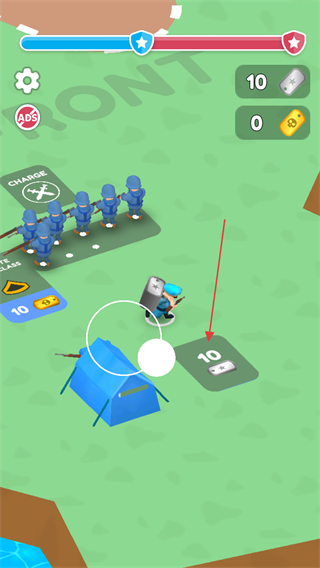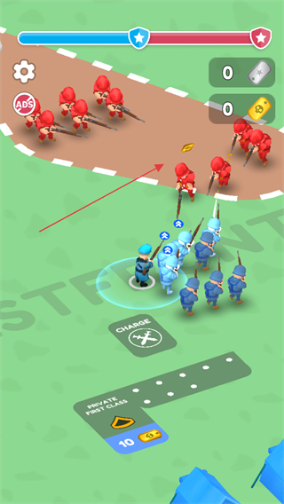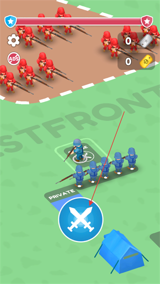 1、點擊交叉劍圖標(biāo),指揮藍(lán)色士兵部隊向紅色敵人發(fā)起進(jìn)攻。